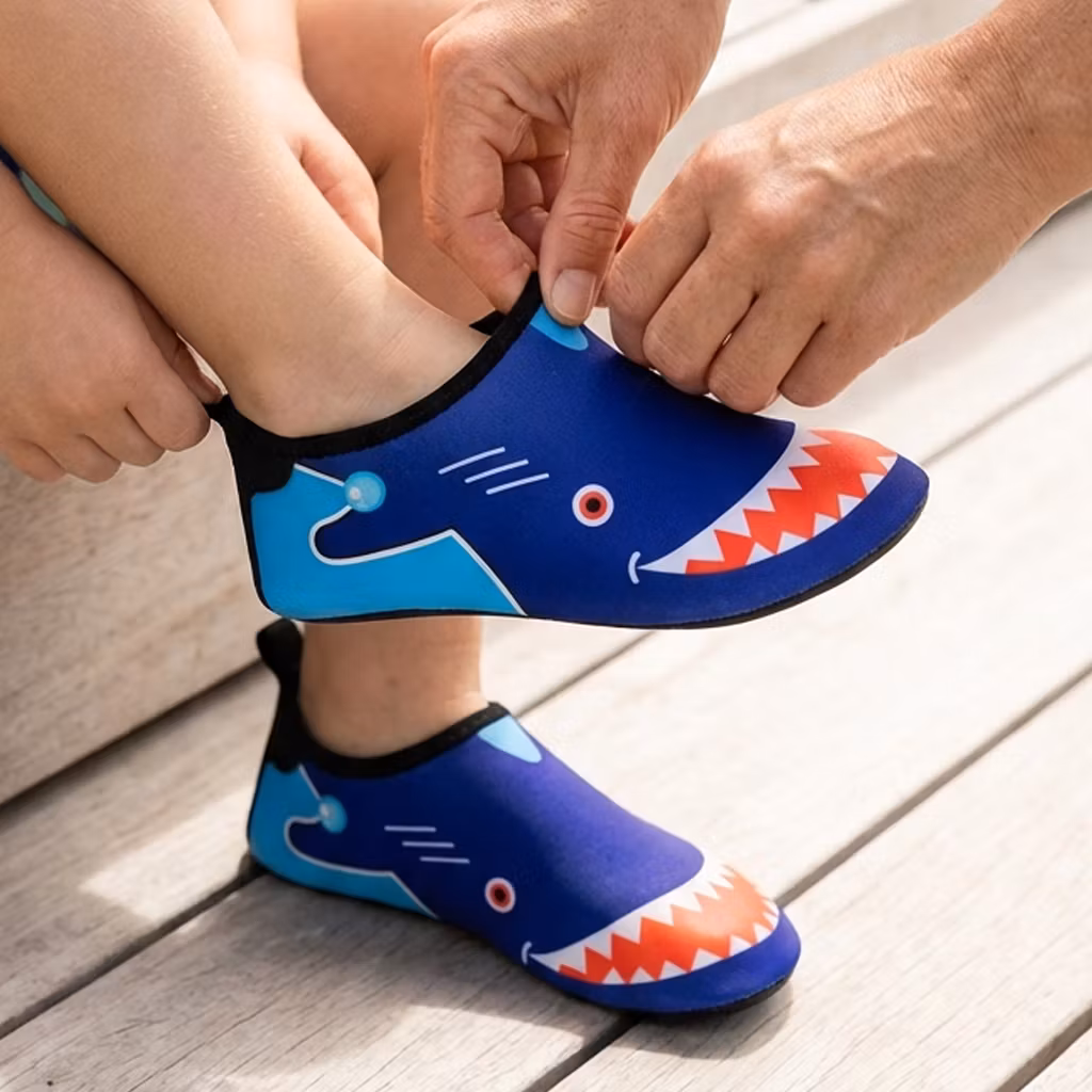 Sommar och sol och lekar utomhus eller på stranden! Dessa badskor är speciellt designade för barn och är utformade för att ge optimal skydd och komfort för barnens fötter under vattenaktiviteter.