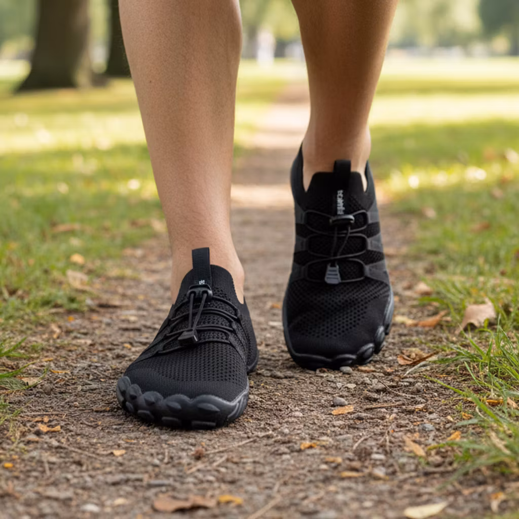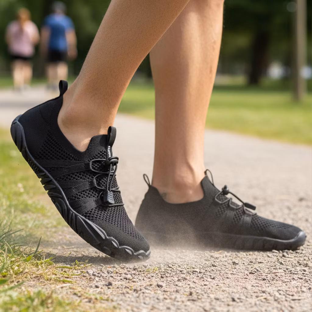 Traditionella skor kan begränsa fotens naturliga funktion. Barfotaskor gör det motsatta – de ger tårna frihet, aktiverar musklerna och låter foten arbeta naturligt.Den breda tåboxen ger tårna ordentligt med utrymme, och den tunna, plana sulan gör att muskler och senor stimuleras vid varje steg. Resultatet blir förbättrad balans, starkare fötter och en mer naturlig gångstil.