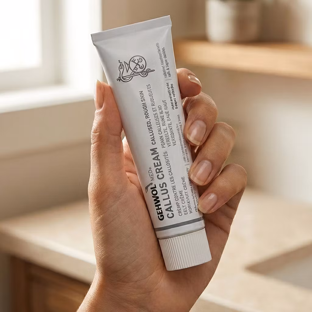 Massera och smörj fötterna med Gehwol kalluskräm för att få mjuka fötter utan förhårdnader. Appliceras två gånger dagligen för bästa effekt.