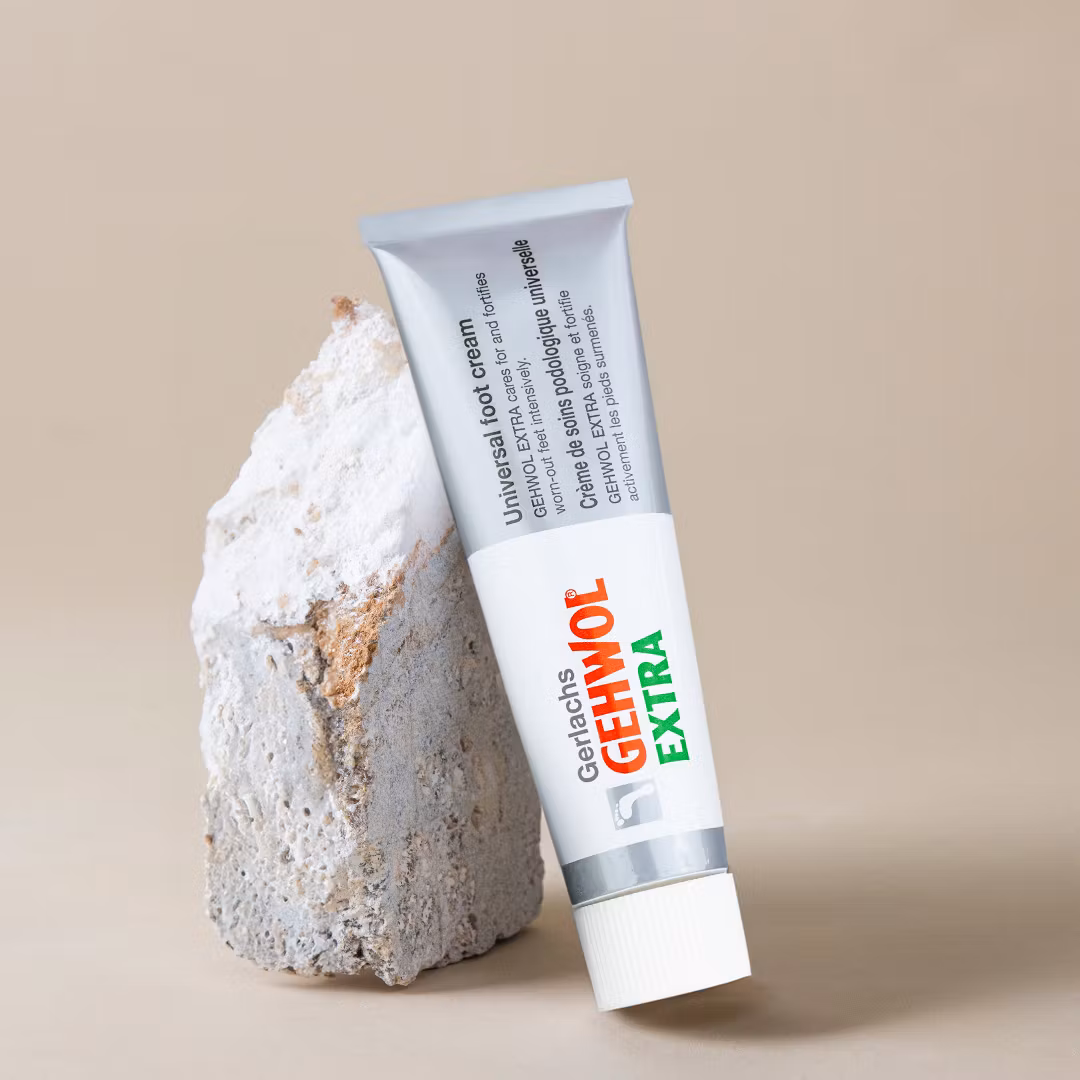 Gehwol fotvårdskräm innehåller bland annat eukalyptus, rosmarin, lavendel och timjan som ger näring åt dina fötter så de kan hålla sig mjuka och levande. Krämens ingredienser främjar även blodcirkulationen i dina fötter så de håller sig behagligt varma.