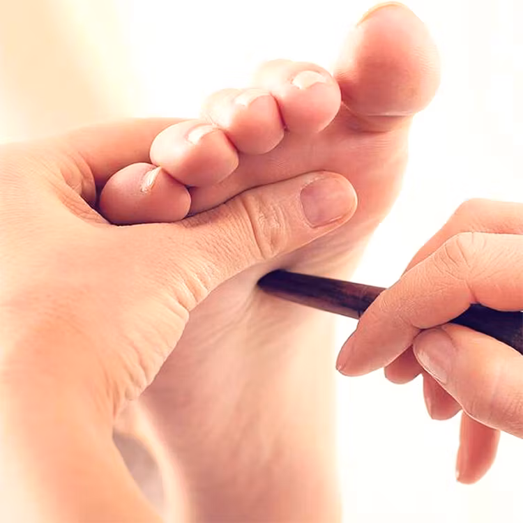 Zonterapi fungerar som massage fast på kroppens insida. Genom att använda en zonterapipinne växlar du enkelt mellan hårda och mjuka tryck under fotsulan. Med denna massagepinne kan du komma åt distinkta punkter under fotsulorna, vilket ger avslappning i hela kroppen. I zonterapin använder man tryck under foten till skillnad mot akupunktur, där man i stället använder nålar.