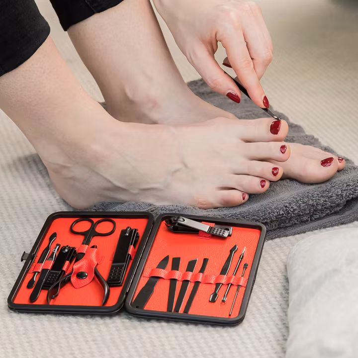 Verktygen förvaras dessutom i ett mycket kompakt etui så att det enkelt kan förvaras badrummet eller tas med i resväskan. Den perfekta nagelsatsen för dig som älskar att ta hand om dina naglar. Det ger en komplett nagelvård varje dag.