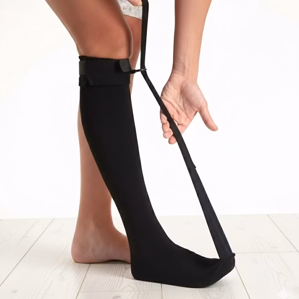 Genom att använda nattstrumpan får du en skonsam sträckning av foten under natten - och kan vakna utan hälsmärta på morgonen.