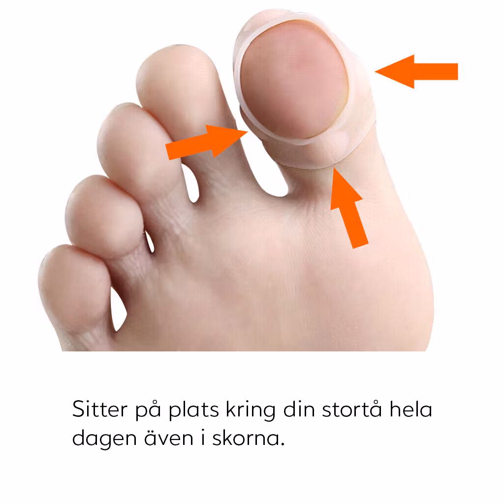 Silikonskydden är enkla att använda och passar perfekt på stortån. Varje förpackning innehåller två stycken skydd, så du kan använda ett till varje stortå.