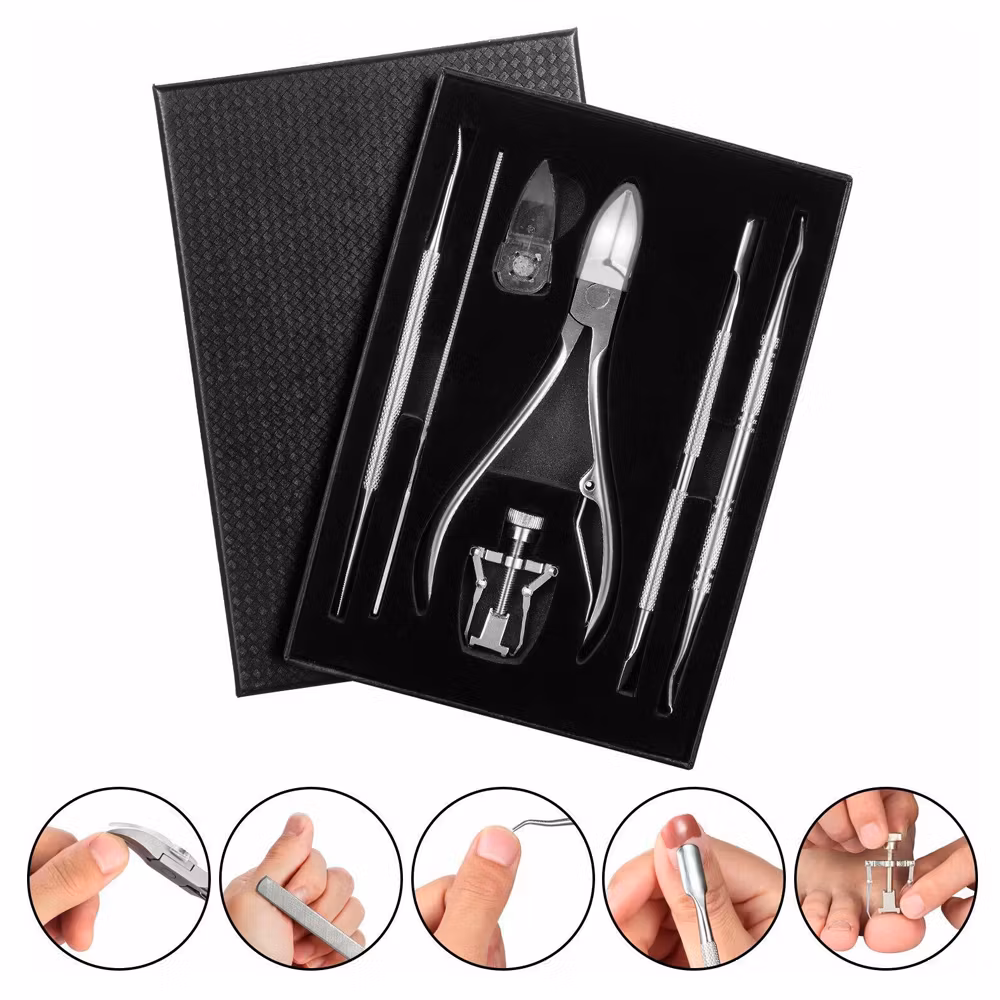 Detta rabatterade paket med fem effektiva nagelverktyg ger dig allt du behöver för att både behandla och motverka inåtväxande naglar. Här har du allt som krävs för att minska smärtan och lösa problemet med naglar som växer in i huden.