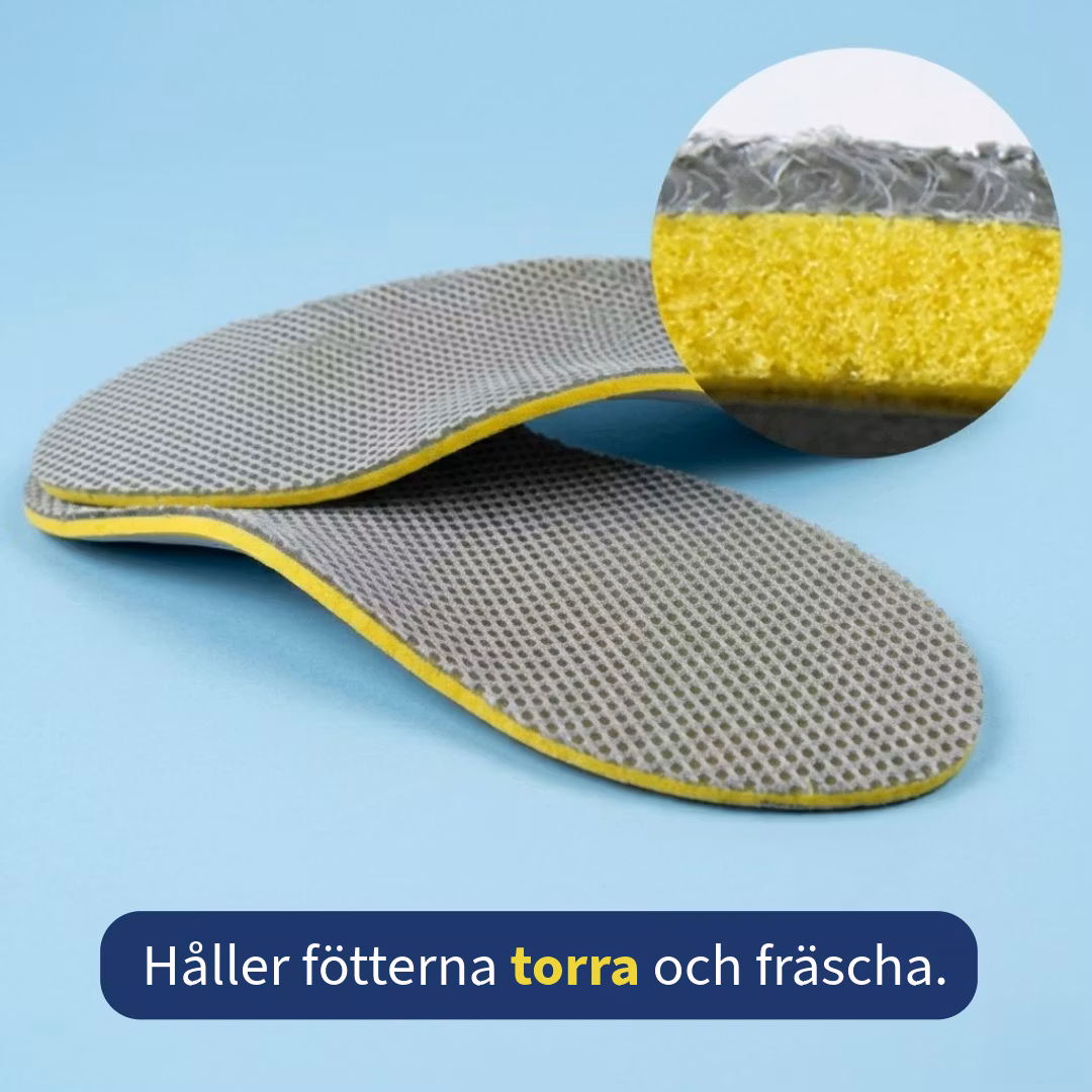 Ett par bekväma skoinlägg med mjuk och bekväm stötdämpning i hälen samt en höjning under hålfoten för pronationsstöd. Sulan fungera utmärkt att använda såväl i arbetsskorna som i vardagsskorna (typ sneakers/converse).