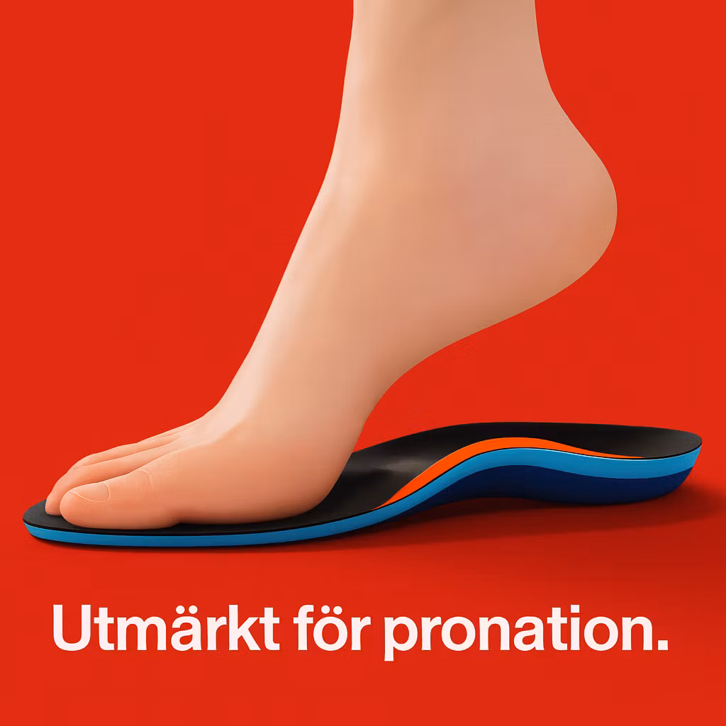 Pronation innebär att foten rullar inåt vid belastning – en naturlig rörelse som blir problematisk när den överdrivs. Dessa skoinlägg är särskilt utvecklade för att ge rätt stöd under hålfoten och styra foten till en mer neutral position. Det kan minska risken för smärta i fötter, knän och höfter. Inläggen ger både dämpning och stöd, vilket gör dem perfekta för dig som vill gå, stå eller träna utan att trötta ut fötterna i onödan.
