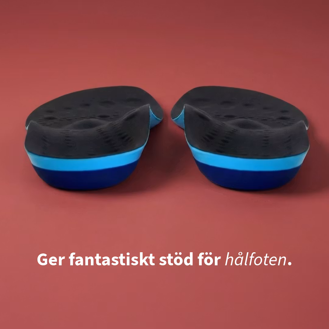 Dessa hålfotsstöd med luftkudde i hälen hjälper till att stabilisera foten och motverka pronation redan från första steget.