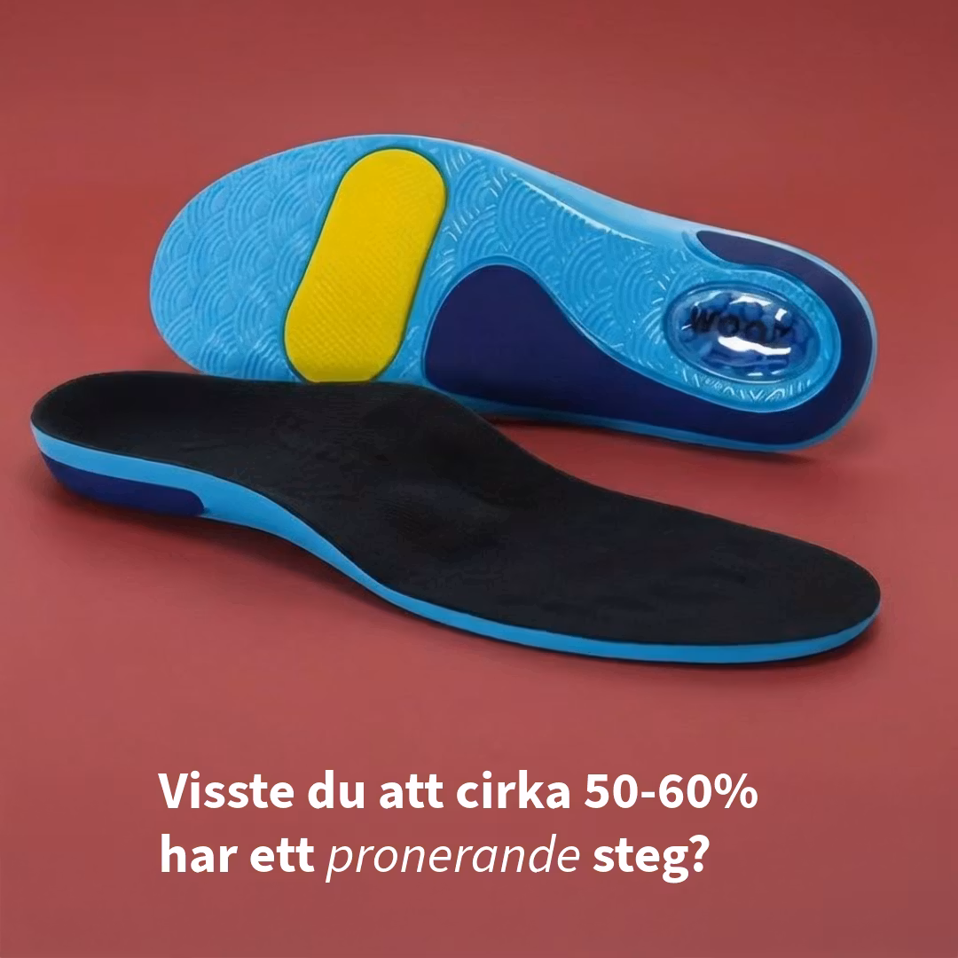 Visste du att omkring 50 % av oss har ett pronerande steg? Pronation är i sig inget farligt men överpronation kan med tiden leda till förslitningsskador i fötter och rygg.