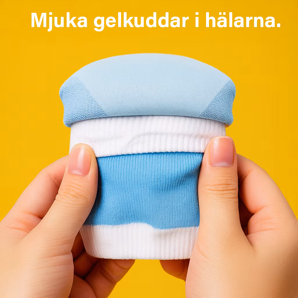 Öm i hälarna? Dessa mjuka sockor har en insydd gelkudde i hälen som absorberar tryck och minskar smärta. Ett bekvämt alternativ för dig som vill ha stötdämpning direkt i strumpan.