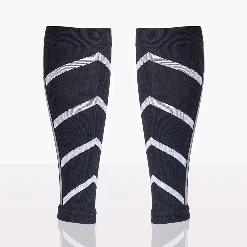 Ett par vadstrumpor för löpning i hög kvalité. Vadstrumporna är tillverkade i ett kompressionsmaterial som reducerar muskelvibrationer, ökar blodcirkulationen i benen samt fokuserar muskelkraften. Med en kanalstickad struktur ger strumporna optimal ventilation och fukttransport.