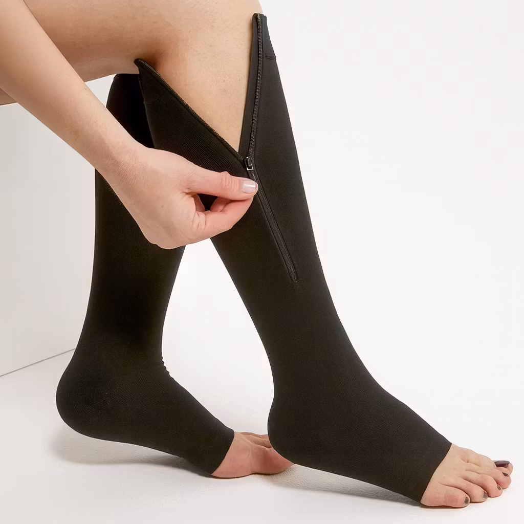 Gillar du stödstrumpor men vill slippa besväret med att ta på och av för tighta strumpor? Då är dessa stödstrumpor med dragkedja den perfekta lösningen för dig.
