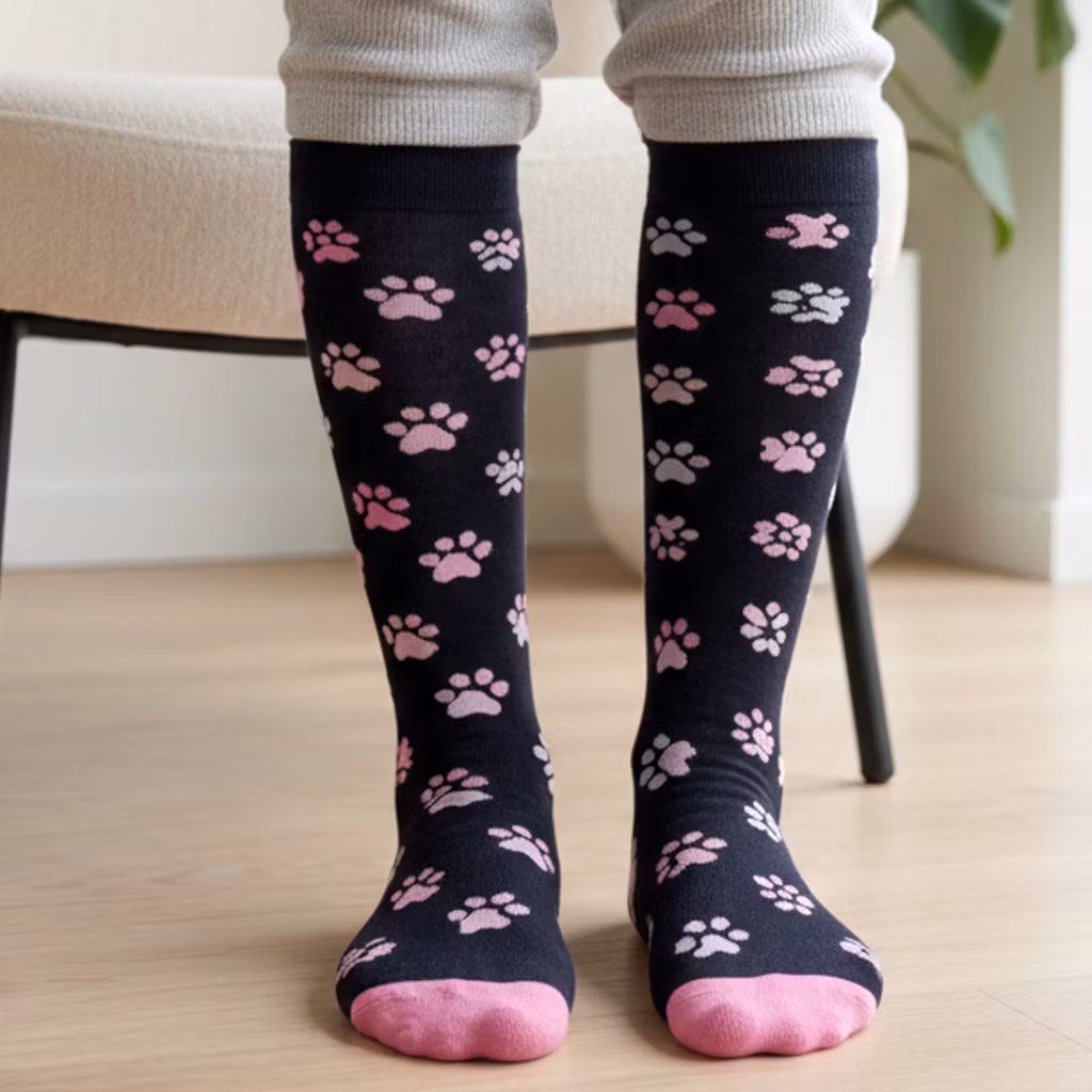 Stödstrumpor med motiv av tassar